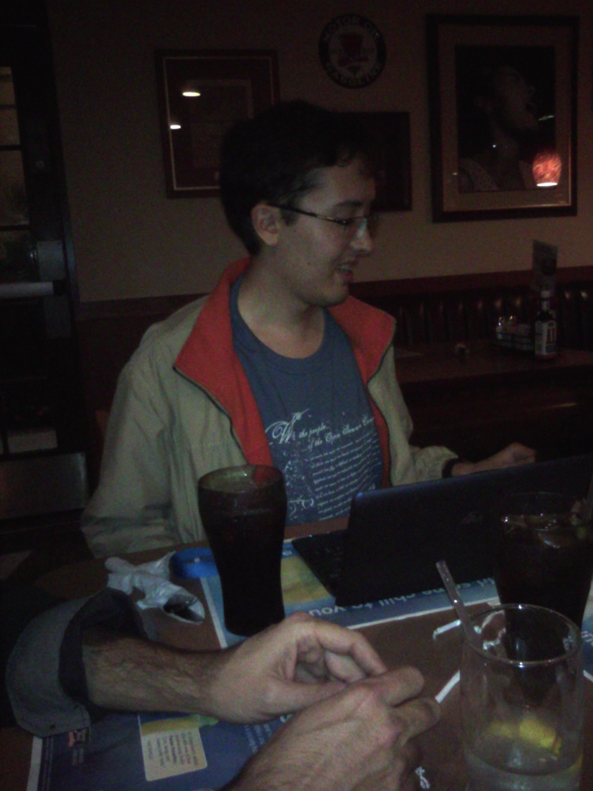 - Our LinuxChix LA SCALE 10x Dead Dog Party at Denny’s ;-) Sharon, Toni and Scott!