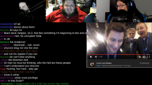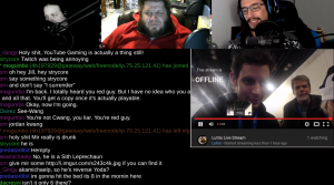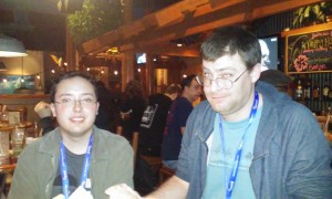 Mathieu (strycore), My husband Steve, Me (jill_linuxgirl) and Patrick (Mir) streaming from SCaLE 14x Game Night on Mathieu’s laptop via Lutris to LinuxGameCast Weekly!!!!!