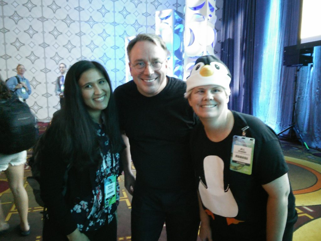 Jill & Nicole got to meet Linus Torvalds @ Open Source Summit North America in LA!!!!!!! We fan girled out!!!! Sqweeeeeee 😀 !!!!!!!!!!!!!!!! #OSSummit #OSSNA #linuxchixla